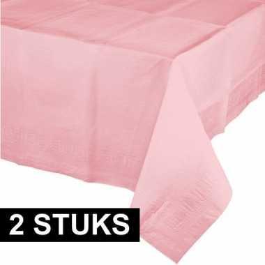 Plastic 2x gekleurde tafellakens lichtroze...