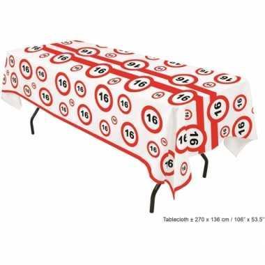 Plastic verkeersbord tafelkleed 16 jaar | Plastic-tafelkleed.nl