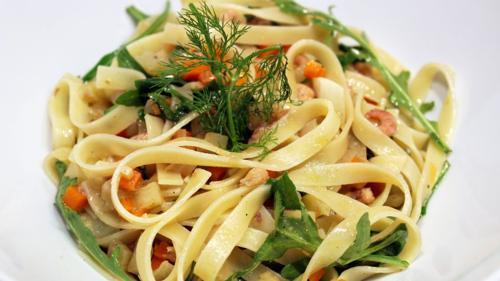 Tagliatelle aux crevettes grises, fenouil et roquette | Idées...