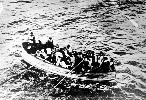 Photo taken from the Carpathia of life boats from the Titanic...
