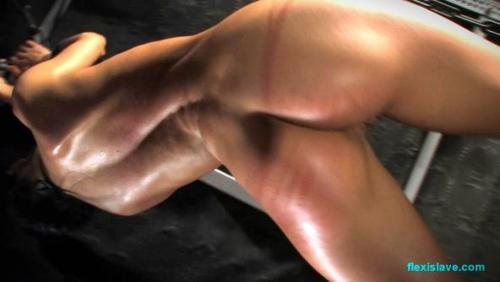 Oiled, tanned skinny Victoria Rose tied up in doggy position...