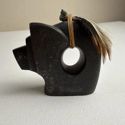 Native American Carved stone bear Fetish Signed Night Bird...