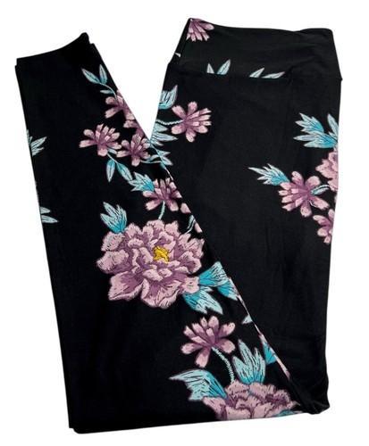 LuLaRoe Leggings TC Tall Curvy Rare BLACK PURPLE Flower ROSE...