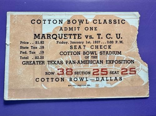 1937 First Cotton Bowl Football Ticket Stub TCU Sammy Baugh...