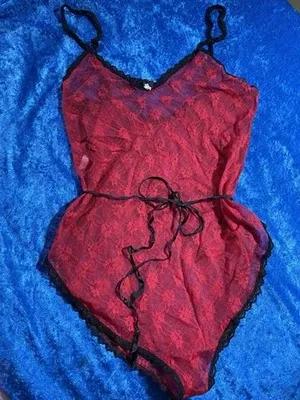 Vintage Red Sheer Mesh Floral Lace Teddy Bodysuit Pinup...