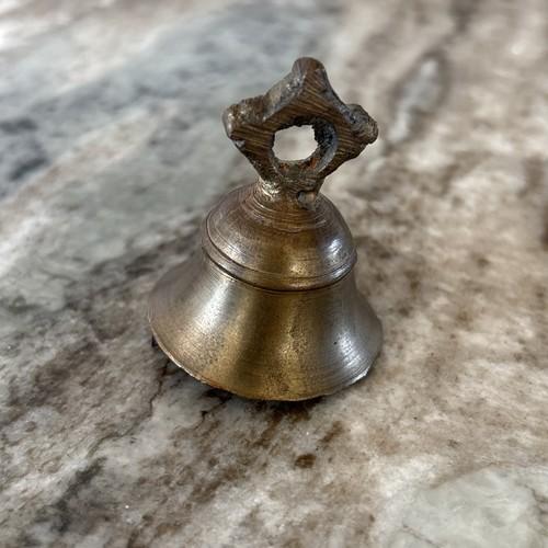 Antique Brass Small Temple Bell with Cross Handle Original Old...