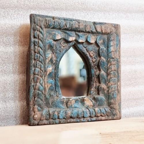Rustic Handmade Vintage Style Indian Temple Mirror Small Wall...