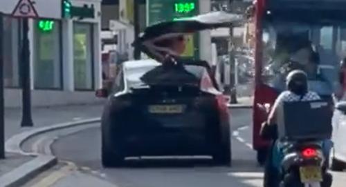 Tesla Model X Gets Falcon Wing Door Clipped By A Bus While...