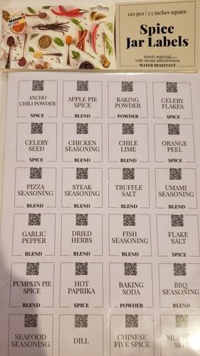 Spice Jar Labels 120 pcs Preprinted White Sticker Black Text