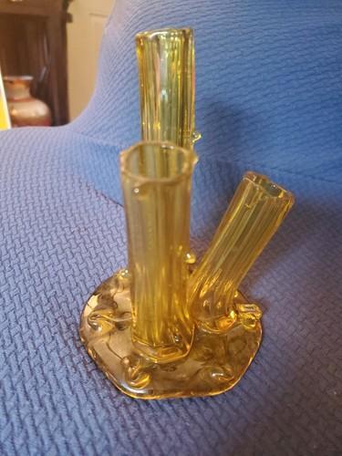 ANTIQUE STEUBEN Amber Triple Tree Trunk Thorn Art Glass Vase 6...