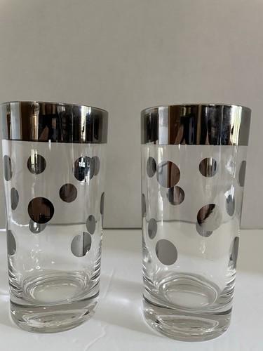 DOROTHY THORPE MCM SILVER BAND POLKA DOT PAIR 5.5”HIGHBALL...