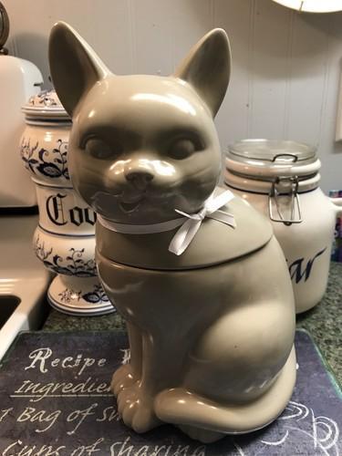 Threshold Gray Stoneware Cat Cookie Jar 10.75" Tall Ceramic 2016