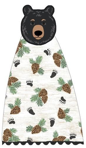 Set of 2 WOODLAND BEAR Black Bear Terry Kitchen Tie Towels by...