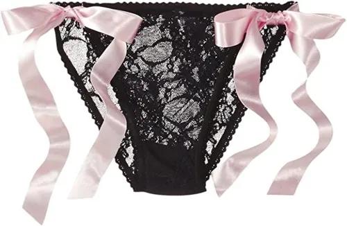 Fantasy Lingerie Women's Satin Side Tie Lace Panty, Black/Pink...