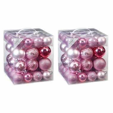 100x kunststof kerstballen pakket roze tinten | Kerst-man.nl