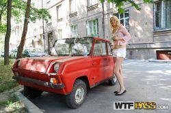 Tiny blonde teen sucks a big cock in a van | Free XXX Monster...