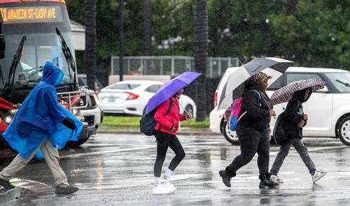 Record-breaking rain drenches Long Beach; continuous showers...