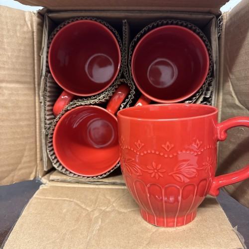 Set of 4 Pioneer Woman Toni Red Coffee Mugs Discontinued...