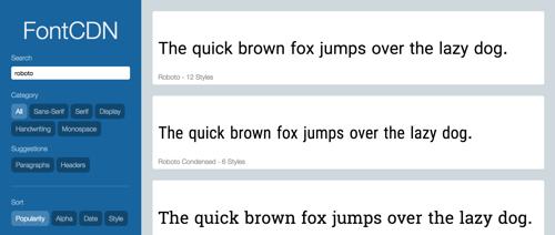 FontCDN: A search tool for Google web fonts
