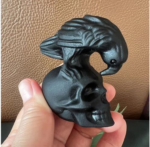 TOP ! Natural Obsidian Crow Skull Hand Carved Crystal Quartz...