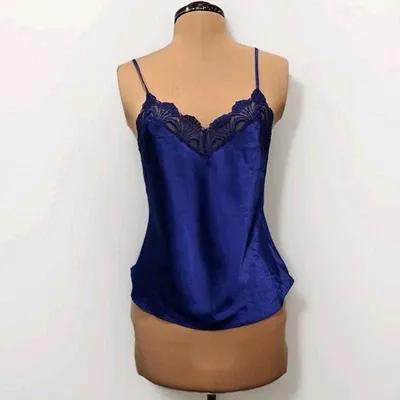 Victorias Secret Satin Cami Top Sz Small Blue Lace Trim Vintage...