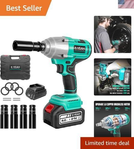 High Torque 1/2" Impact Gun with 4.0Ah Battery, Brushless Motor...