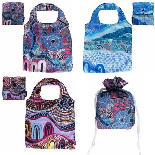 3 x REUSABLE SHOPPING BAGS, TOTES - ABORIGINAL - JESSICA ARTIST...
