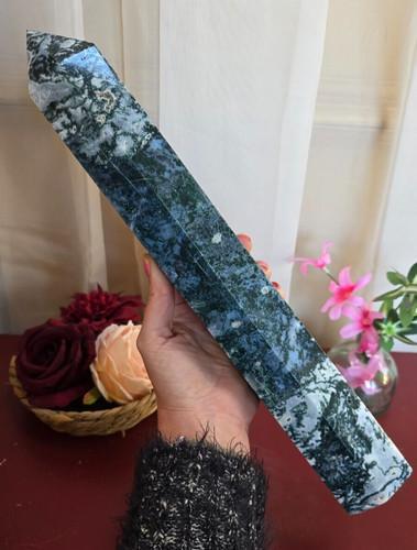 XL 5lb 14" Moss Agate Crystal Tower Natural Blue Green White...