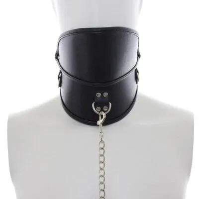 PU Leather Neck Sleeve + Traction Chain Sex Toy Fetish Harness...