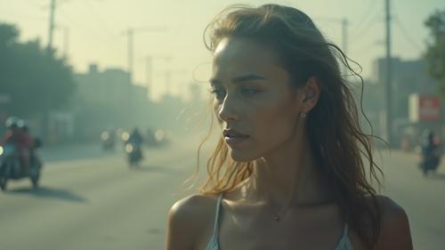 create a normal video where a woment at the traffic struggli...
