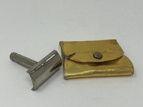 Vintage Gillette Mini Safety Razor Travel Kit Snap Gold Case
