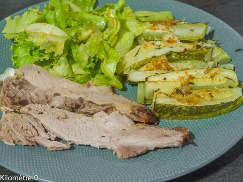 Travers de porc à la moutarde, frites de courgettes au fromage...