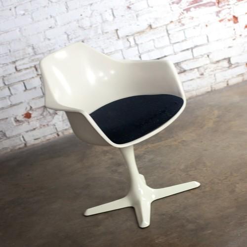 1 Mid-20th Century MCM Tulip Armchair with White Shell & Black...