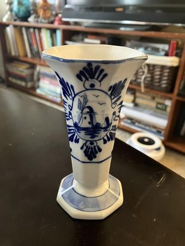 Vintage Hand Painted Deco Holland Delft Blue Ceramic Tulip Vase...