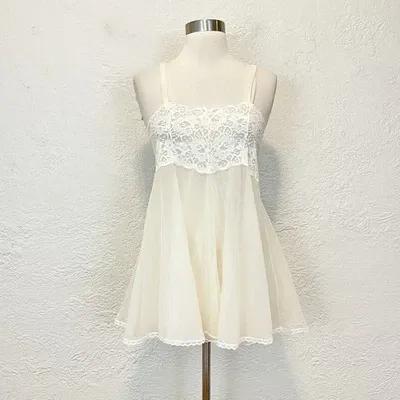 Vintage Mesh Tulle Slip Dress Lingerie Cream Ivory XS Sheer...