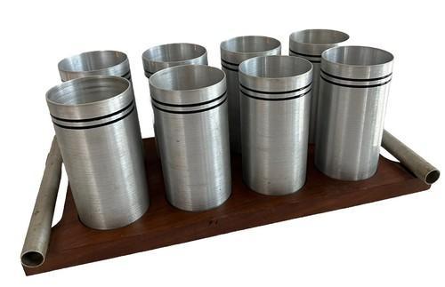 Art Deco Spun Aluminum Tumblers and Walnut Tray West Bend...
