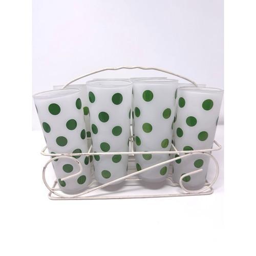 VINTAGE MCM Frosted Green Polka Dot Tumblers Tom Collins With...