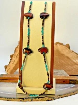 Vintage Zuni Sterling Heshi &Turquoise Bead Carved Bear Fetish...