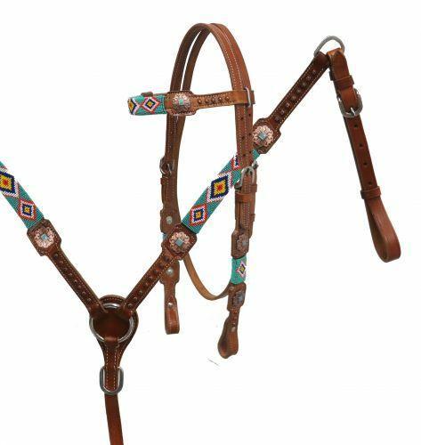 Western Saddle Horse Navajo Turquoise Beaded Bridle + Breast...