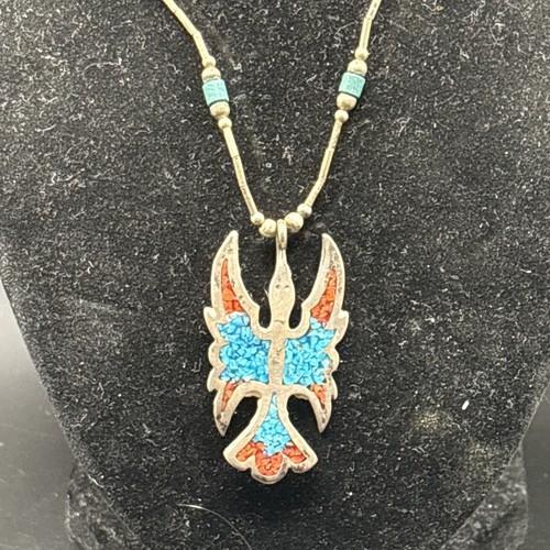 Vintage NAVAJO Sterling Silver Turquoise Coral Peyote Bird...
