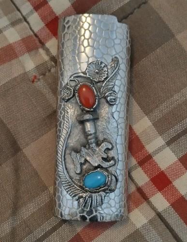 ***VINTAGE SCREW ME LIGHTER CASE WITH TURQUOISE AND CORAL***