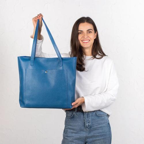Eilish Blue Leather Tote Bag with Button – ULB Tote Bags For...