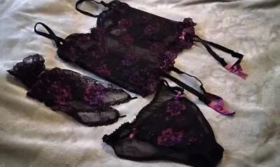 Vtg 80s Undercover Wear Black Lace Ruffle Nylon Lingerie...