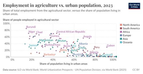 Employment in agriculture vs. urban population - Our World in...