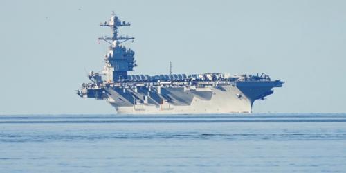 O porta-aviões USS Gerald R. Ford retoma suas operações...