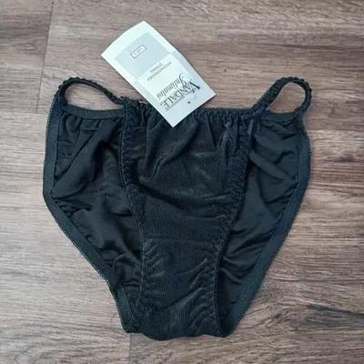 New Van Dale Black Ribbed Stretch Nylon Spandex String Bikini...