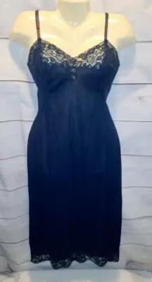VTG Van Raalte Suavette 32 T Black Satin Full Slip Dress Lace...