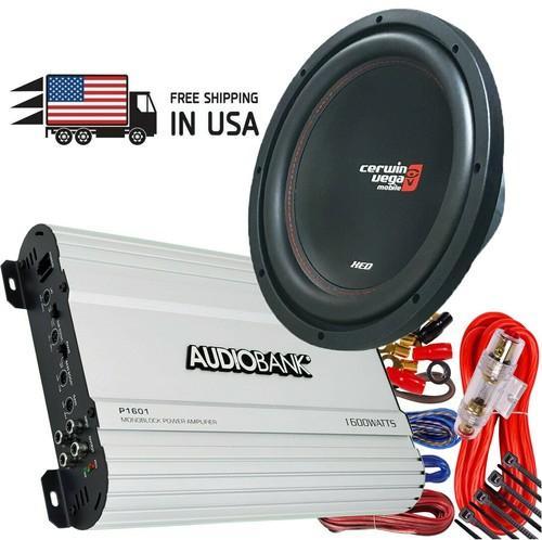 1x CERWIN-VEGA 1000W 10" Subwoofer + Audiobank 1600W Amplifier...