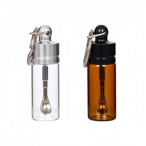 Travel Spice Containers with Spoon - Mini Glass Vial Keychain...
