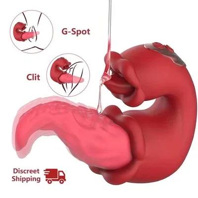 Rose Vibrators Dildos Tongue Licking Clit G-spot Breast stim...